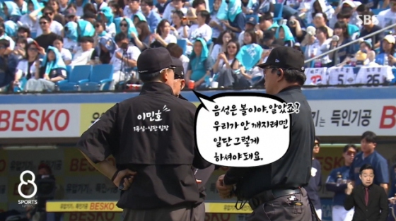 문승훈 주심이 "지직 거리고 볼 같았다..."라고 설명하겠다는 식으로 말하자 이민호 심판은 "'같았다'가 아니라 볼이라고 나왔다고 그렇게 하시라고 우리가 안 깨지려면"이라고 심판진의 입장을 통일시키는 장면까지 중계화면을 통해 그대로 전파를 탔다.