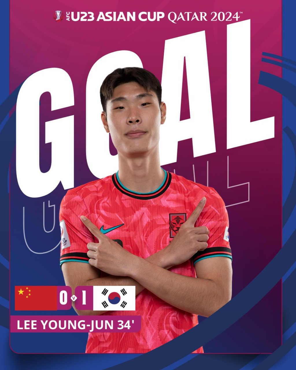 한국은 전반전 이영준(김천 상무)의 선제골로 앞서나갔다. 중국의 촘촘한 수비를 뚫어내지 못하던 찰나 스트라이커의 슈팅 한 방이 승부의 균형을 깼다.