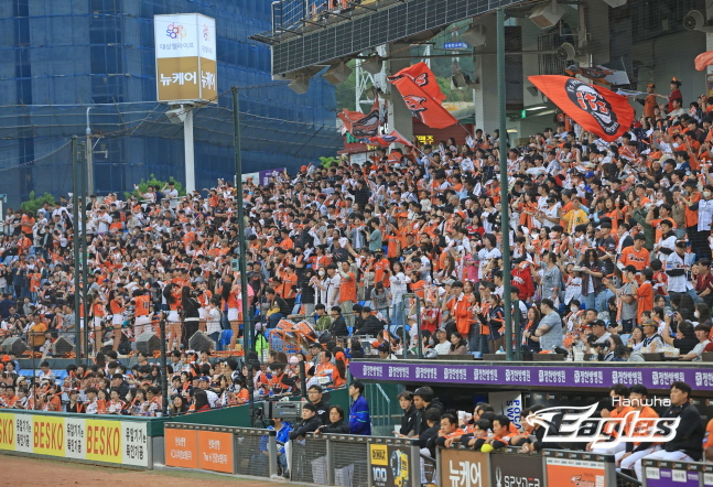 한화 이글스는 20일 "오후 5시 8분 전 좌석(1만 2000석) 매진됐다"고 밝혔다. 올 시즌 안방에서 열린 10경기 모두 만원 관중을 이뤘다.