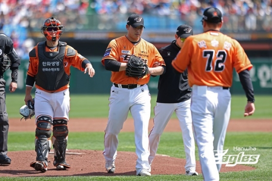 담 증세를 털어내고 2번째 경기에서 7이닝을 소화하며 최원호 감독을 미소 짓게 했지만 3번째 등판이었던 지난 13일 KIA 타이거즈전에서 공 4개만 던진 뒤 팔꿈치에 통증을 느껴 자진 강판했다.