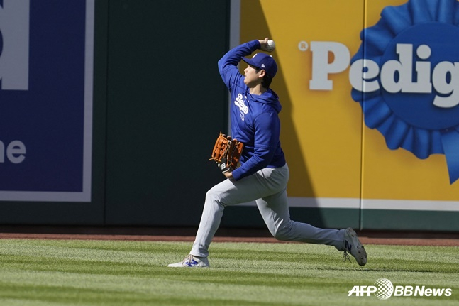 1회초 상대 선발 패트릭 코빈을 맞아 9구 승부 끝에 2루수 땅볼로 물러났던 오타니는 팀이 0-1로 뒤진 3회말에도 시속 101.4마일(163.2㎞) 중견수 라인드라이브 타구로 물러났다. 5회말에도 중견수 뜬공이었지만 타구 속도는 109.7마일(176.5㎞)로 총알 같은 타구를 뿜어냈다. 발사각이 46도에 달해 타구가 103m를 비행한 끝에 중견수 글러브로 빨려들어간 게 아쉬웠다.