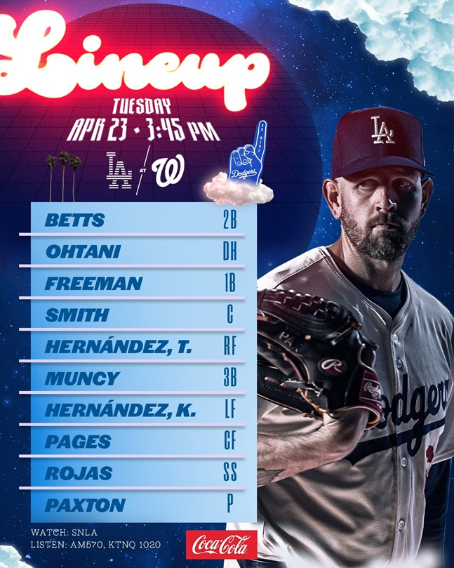 다저스는 무키 베츠(2루수)-오타니(지명타자)-프레디 프리먼(1루수)-윌 스미스(포수)-테오스카 에르난데스(우익수)-맥스 먼시(3루수)-키케 에르난데스(좌익수)-앤디 페이지스(중견수)-미구엘 로하스(유격수)를 선발로 내세웠다. 투수는 제임스 팩스턴.