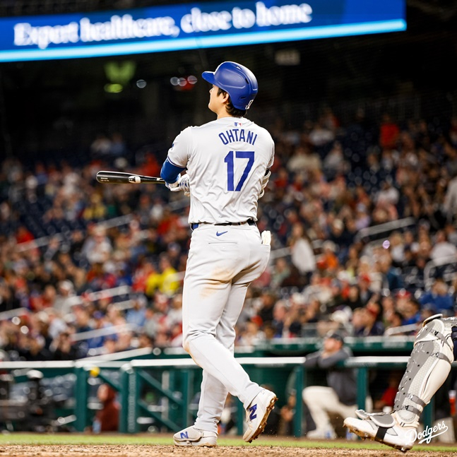 오타니는 24일(한국시간) 미국 워싱턴D.C. 내셔널스 파크에서 열린 워싱턴 내셔널스와 2024 미국프로야구 메이저리그(MLB) 원정경기에 2번 지명타자로 선발 출전해 4타수 1안타(1홈런) 1볼넷 1타점 1득점으로 활약하며 다저스의 4-1 승리를 견인했다.
