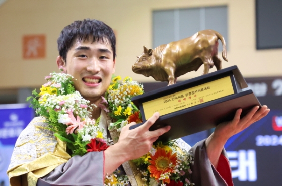 문경시청 소속 홍승찬이 첫 태백장사 트로피를 들어올렸다.