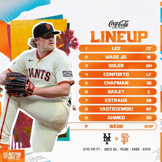 샌프란시스코는 이정후(중견수)-라몬테 웨이드 주니어(1루수)-호르헤 솔레어(지명타자)-마이클 콘포토(좌익수)-맷 채프먼(3루수)-패트릭 베일리(포수)-타이로 에스트라다(2루수)-마이크 야스트렘스키(우익수)-닉 아메드(유격수) 순으로 타선을 꾸렸다. 선발 투수는 로건 웹.