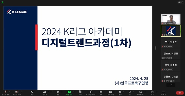 한국프로축구연맹이 지난 25일 '2024년도 K리그 아카데미 - 제1차 디지털트렌드 과정'을 개최했다고 26일 밝혔다.