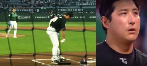 SSG 선발 투수는 오원석. 오원석이 뿌린 초구 체인지업(129km)이 바깥쪽 높은 코스에 살짝 걸치면서 스트라이크가 됐다. 모서리 끝에 걸친 공이 스트라이크로 판정되자 황재균은 혀를 내두르며 놀라는 기색을 내비쳤다. 반면 오원석 입장에서는 절묘하게 스트라이크 존을 공략한 투구였다.