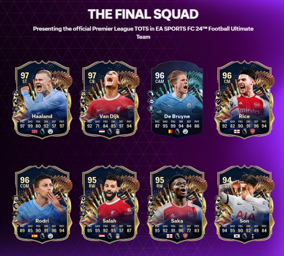 이밖에도 올 시즌 프리미어리그 20골을 몰아치며 득점 공동 선두를 달리는 콜 파머와 공격수 크리스토퍼 은쿤쿠(이상 칠세)도 이름을 올렸다. 아스톤 빌라 돌풍의 주역인 올리 왓킨스도 한 자리를 차지했다. 알레한드로 가르나초도 맨체스터 유나이티드 선수 중 유일하게 올해의 팀 후보에 드는 영광을 누렸다.