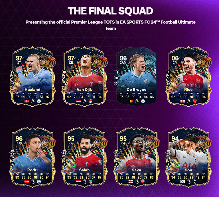 아스널에서는 데클란 라이스, 부카요 사카, 윌리엄 살리바, 가브리엘 마갈량이스, 벤 화이트(이상 아스널)가 선정됐다. 주장 버질 판 다이크를 비롯해 모하메드 살라, 알렉시스 맥알리스터, 알리송 베케르, 루이스 디아스(이상 리버풀)는 리버풀 선수로서 TOP 20에 들었다.