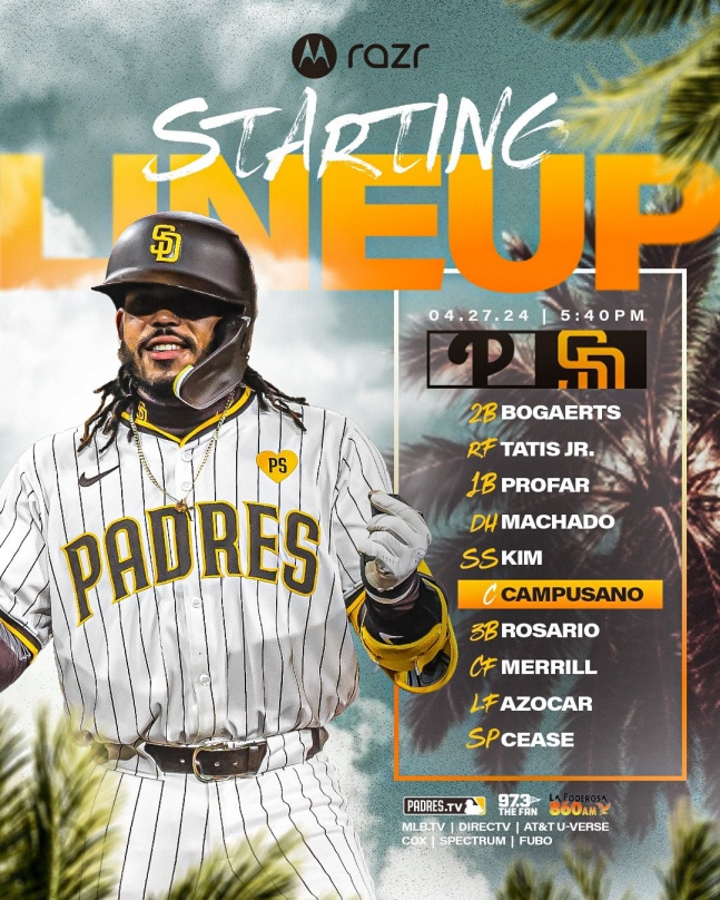 샌디에이고는 잰더 보가츠(2루수)-페르난도 타티스 주니어(우익수)-쥬릭슨 프로파(1루수)-매니 마차도(지명타자)-김하성(유격수)-루이스 캄푸사노(포수)-에귀 로사리오(3루수)-잭슨 메릴(중견수)-호세 아조카르(좌익수)로 타선을 구성했다. 선발은 딜런 시즈.