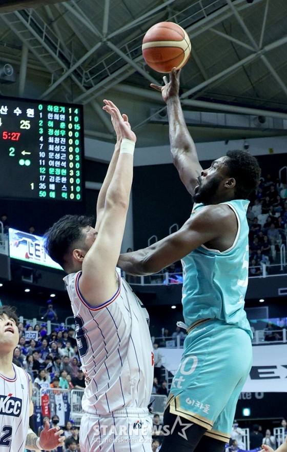 KCC는 2쿼터에만 24점을 올린 알리제 존슨(29점 4리바운드)과 라건아가 26점 11리바운드로 분전했지만 패배에 고개 숙였다. 허웅은 16점 4리바운드 4어시스트를 기록했다.