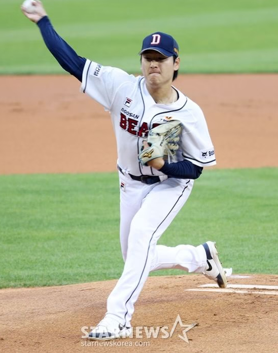 국가대표 투수 곽빈은 아직까지 승리가 없었다. 4패. 6경기에서 모두 5이닝 이상을 책임졌지만 부진과 불운이 겹쳤다.