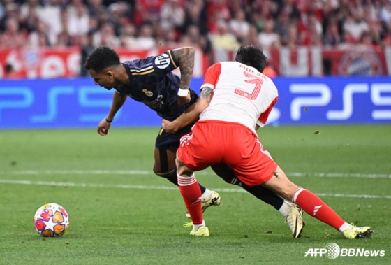 뮌헨은 후반전 2-1로 앞서고 있었다. 하지만 김민재가 호드리구(24·레알 마드리드)에 페널티 박스 안에서 파울을 범하며 페널티킥을 헌납했다. 비니시우스는 후반 38분 키커로 나서 페널티킥을 밀어 넣었다.