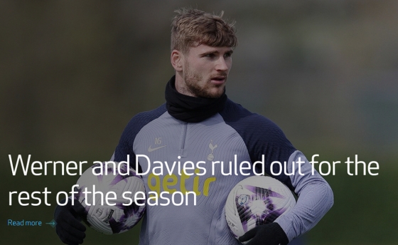 1군 부상자 명단에 무려 6명이 이름을 올렸다. 구단은 "티모(베르너)와 벤(데이비스)은 데스티니 우도기(대퇴사두근 부상), 마노르 솔로몬(무릎 부상), 프레이저 포스터(발 부상), 라이언 세세뇽(햄스트링 부상)과 함께 장기 부상자 명단에 포함된다"라고 전했다.