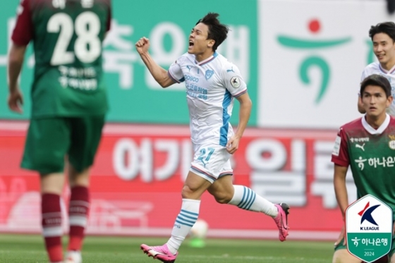 포항 선두 등극에도 큰 힘이 됐다. 강원전에서 승점 3을 추가한 포항은 6승3무1패(승점 21)를 기록, 김천상무(6승2무1패·승점 20)를 2위로 끌어내리고 선두 자리를 탈환했다. 올 시즌 전까지만 해도 포항은 '명장' 김기동 감독이 서울로 향하고, 주축 선수들이 대거 이탈해 힘들 것이라는 어두운 전망이 많았다. 하지만 완전히 다른 모습을 보여주고 있다. 포항 대반전의 중심은 단연 '추가시간 사나이'이자, 득점왕 후보로 올라선 정재희다.
