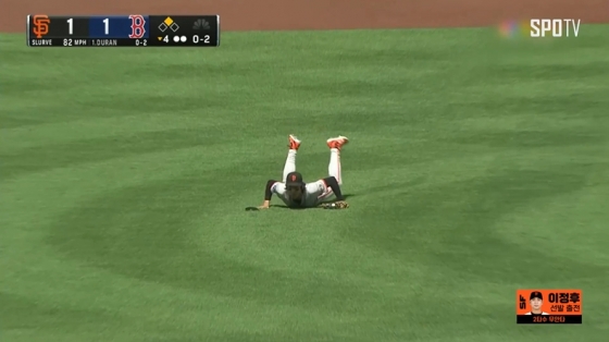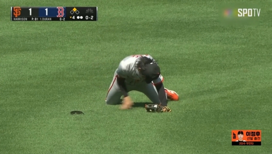앞서 제런 듀란이 비슷한 타구를 어렵지 않게 잡아냈던 상황과 대비됐다. 현지 중계 카메라는 연신 이정후를 비췄다.
