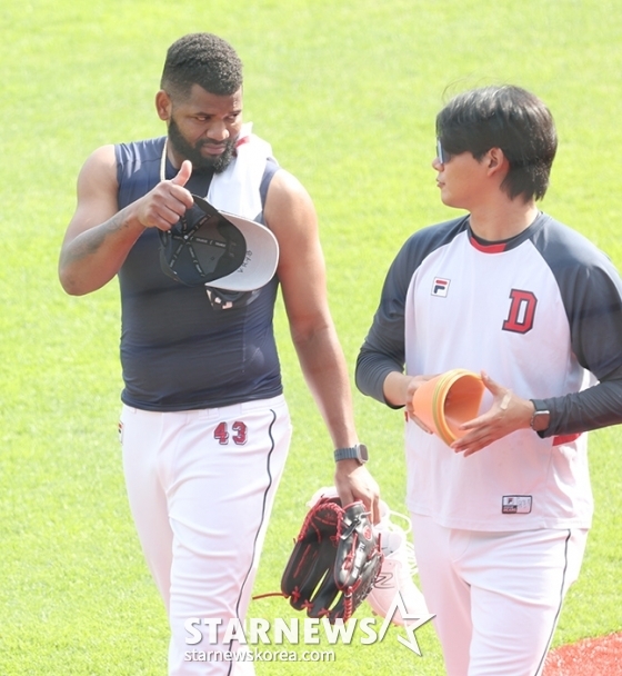 그러면서 알칸타라에 관해서는 "캐치볼을 했는데 사실 드릴 말씀이 없다"면서 "알칸타라가 언제 돌아올지는 누구도 모른다. 본인은 알 것 같다. 오늘도 캐치볼을 했으니까 상태를 지켜보면서 더 길어지겠다 싶으면 저희도 다른 방법을 써야 할 것 같다. 알칸타라가 돌아오기를 바라야 한다"고 말했다. 사실상 알칸타라를 마냥 기다리지 않겠다는 뜻으로 해석될 수 있는 발언이었다. 결국 복귀 의지 역시 알칸타라에 달린 상황. 지난 1일 두산 구단은 "알칸타라는 국내 병원 세 곳을 들러 진료를 받았다. 검진 결과 우측 팔꿈치 외측 염좌 진단을 받았다"면서 "지난달 30일과 이날 잠실구장에서 캐치볼을 소화했고 현재 알칸타라의 미국 주치의 소견을 기다리고 있다"고 전했다.