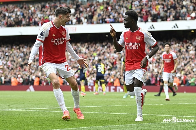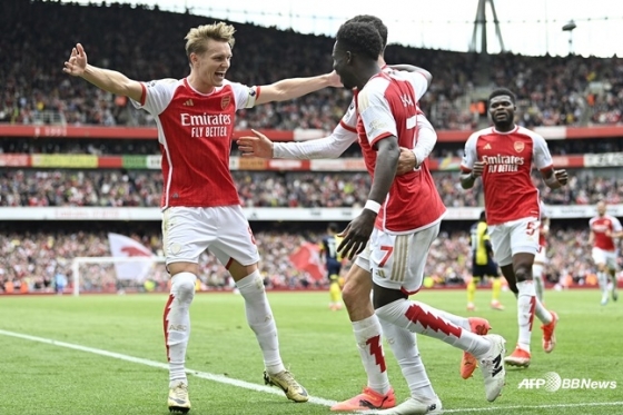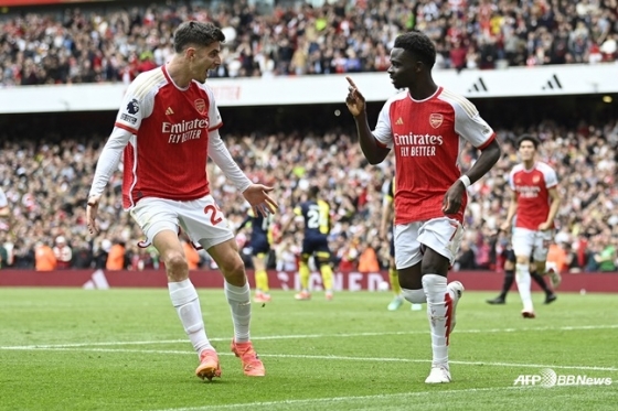 이날 결과로 아스널은 36경기 26승 5무 5패 승점 83으로 선두 자리를 지켰다. 2위 맨체스터 시티(34경기 79점)와 4점 차이다. 맨시티는 잔여 경기 승리 시 아스널과 순위를 뒤집을 수 있다.