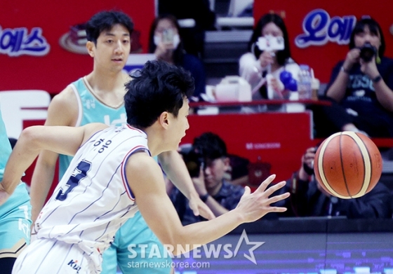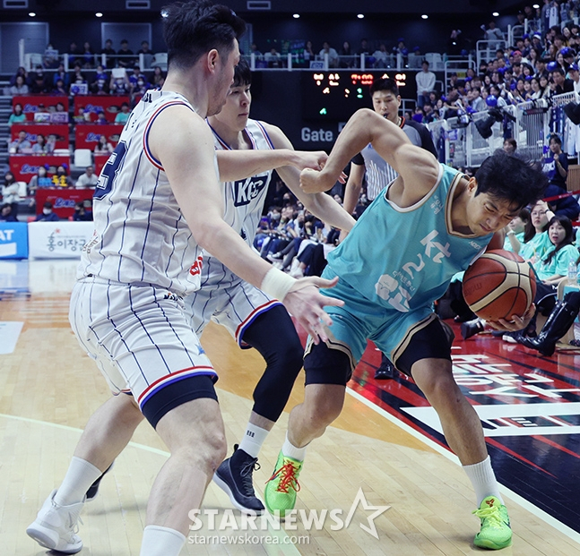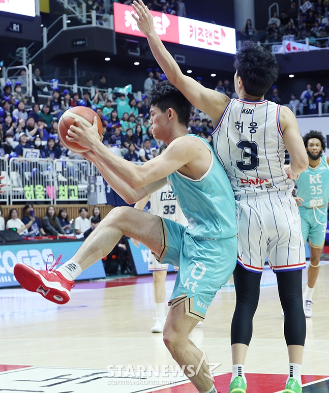 KCC가 3쿼터에 완전히 흐름을 가져왔다. 쿼터 초반 허훈과 허웅의 형제 대결이 뜨거웠다. 허웅이 자유투 2득점과 3점으로 연속 5득점을 올렸고, 허훈은 리바운드를 활발히 잡아내며 득점을 성공했다.