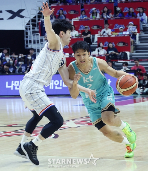 송영진 KT 감독은 "끝까지 물고 늘어진다는 마음으로 뛰겠다. 경기 미팅에서 선수들에게 어떻게든 이겨 부산으로 다시 가 6차전을 치르자'고 이야기를 나눴다"고 말했다. 허훈과 패리스 배스 외에 문성곤, 문정현, 하윤기 등 다른 선수들의 슛이 터져야 승산이 있다고 강조했다. 그래도 에이스 허훈을 향한 믿음은 굳건했다. "허훈은 코트 안팎에서 긍정적인 에너지가 있다. (감기 증세로) 몸 상태가 안 좋지만 극복할 수 있을 것이다"라고 말했다.
