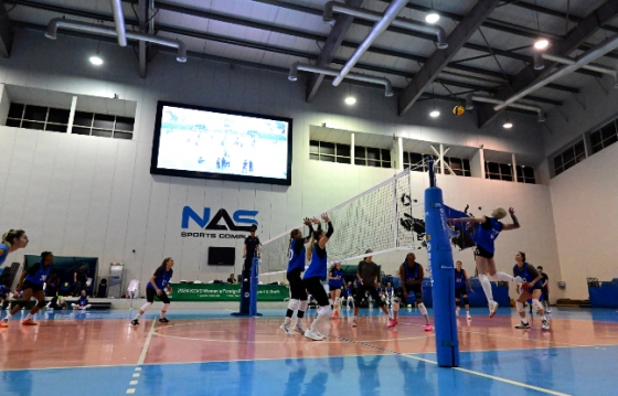 오후에는 NAS 스포츠 컴플렉스로 장소를 옮겨 신체검사 일부를 진행했다. 체중과 러닝 점프, 스탠딩 리치를 측정했다. 8일에는 스탠딩 점프와 신장 측정을 실시한다. 선수들은 스트레칭으로 몸을 푼 뒤 본격적인 연습 경기에 나섰다. 대다수 선수들이 날개 공격수인 관계로 현지에서 투입된 세터가 참여했고, 리베로 없이 6대6 경기로 평가전을 치렀다.