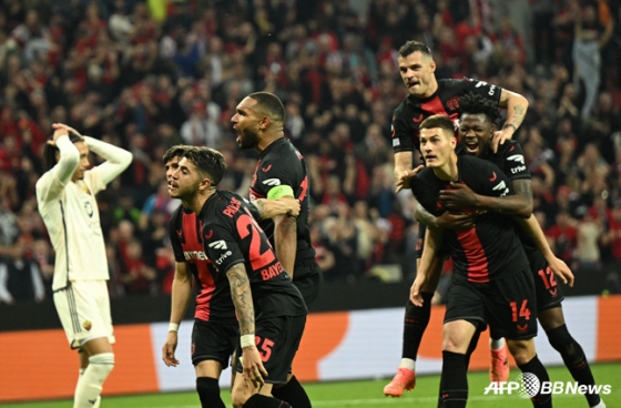 레버쿠젠은 10일(한국시간) 독일 레버쿠젠의 바이아레나에서 열린 2023~2024 유럽축구연맹(UEFA) 유로파리그(UEL) 준결승 2차전 AS로마(이탈리아)와 홈경기에서 2-2로 비겼다. 엄청난 경기였다. 레버쿠젠은 후반 막판까지 0-2로 지고 있어 위기에 몰렸는데, 후반 37분 추격골에 이어 후반 추가시간 6분 극적인 동점골까지 터뜨려 승부의 균형을 맞췄다. 덕분에 레버쿠젠은 유로파리그 결승에 올랐다. 레버쿠젠은 지난 3일에 열린 1차전에서 2-0으로 승리했다. 합계 스코어 4-2를 기록했다.