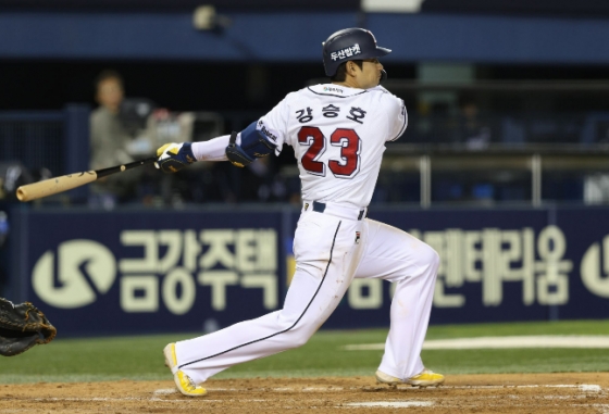 올 시즌 불방망이를 휘두르고 있지만 이날 활약은 유독 눈부셨다. 올 시즌 4안타 경기는 처음이었다. 1회말 2사에서 안타를 치고 나가며 김재환의 홈런 때 득점을 했고 3회엔 2루타를 날렸다. 5회에도 안타를 추가한 강승호는 팀이 5-3으로 앞선 7회 2사 1루에서 좌익수 방면 3루타를 날리며 4안타 경기를 완성했다.