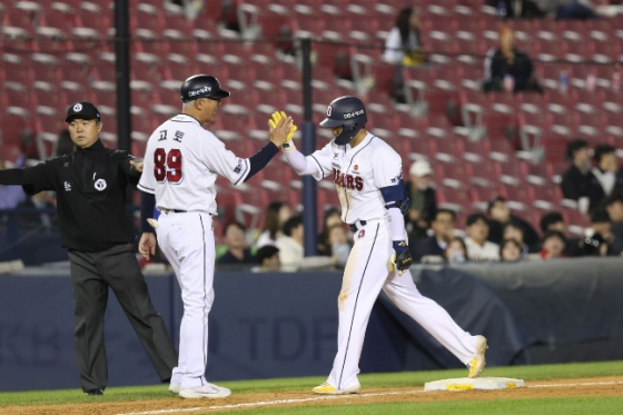 강승호는 "(수비에서) 자신감을 많이 찾기도 했고 조성환 코치님과 훈련도 많이 하고 멘탈적인 부분에서도 굉장히 도움을 많이 주셨다. 감사드린다고 전하고 싶다"며 "세이프가 되긴 했지만 어쩔 수 없는 플레이라고 생각한다. 다음에는 꼭 죽일(아웃시킬) 수 있도록 하겠다. 그런(호수비)가 자주 나왔으면 좋겠다"고 전했다.