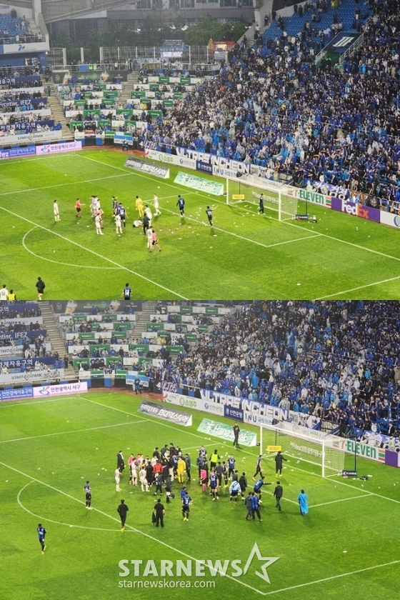경기가 끝난 뒤에는 인천 팬들이 그라운드를 향해 물병을 투척했다. 종료 휘슬이 울리자 서울 골키퍼 백종범이 인천 서포터즈 앞에서 승리 세리머니를 펼쳤는데, 이에 인천 팬들이 폭발했다. 수많은 인천 팬들이 물병을 던졌다. 이 과정에서 기성용이 급소를 맞아 쓰러지기도 했다. 기성용은 꽤 오랫동안 쓰러져 있었다. 다행히 일어나 스태프의 도움을 받아 경기장을 빠져나갔다. 골키퍼 이범수 등 인천 선수들이 서포터스 앞으로 다가가 '물병을 던지지 말라'는 제스처를 보낸 뒤에야 상황이 진정됐다.