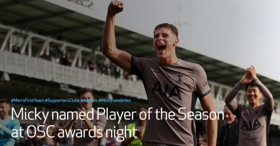 팬들로부터 인정을 받은 셈이다. 토트넘에 따르면 이번 올해의 선수상은 전 세계 OSC로부터 받은 투표를 합산해 선정됐다. 구단은 "21개국의 40개 이상의 서포터스 클럽이 OSC 시상식에 참가했다"라며 "투표는 전 세계 540개 OSC에서 진행됐다. 판 더 펜은 여기서 이번 시즌의 선수로 선정됐다"라고 알렸다.