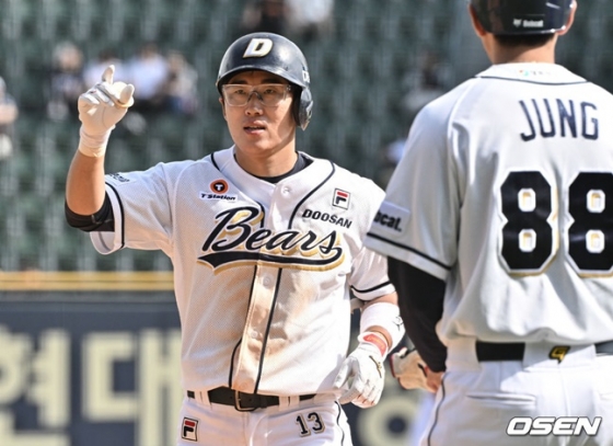 두산의 타선은 정예였다. 정수빈(중견수)-허경민(3루수)-강승호(2루수)-양의지(포수)-양석환(1루수)-김재환(지명타자)-헨리 라모스(우익수)-김재호(유격수)-김대한(좌익수) 순으로 선발 라인업을 짰다.