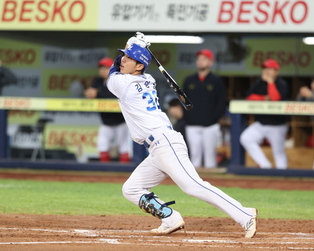 이어 "예전부터 연습용 선수와 시합용 선수가 있다는 얘기를 많이 하곤 했다"며 "자기 기량을 얼마나 발휘하는지, 80%만 발휘해도 충분한데 그렇지 못한 선수들이 많다"며 "김영웅은 80%가 아니고 그 이상을 부담이 큰 순간에도 발휘를 하고 있다"고 칭찬했다.