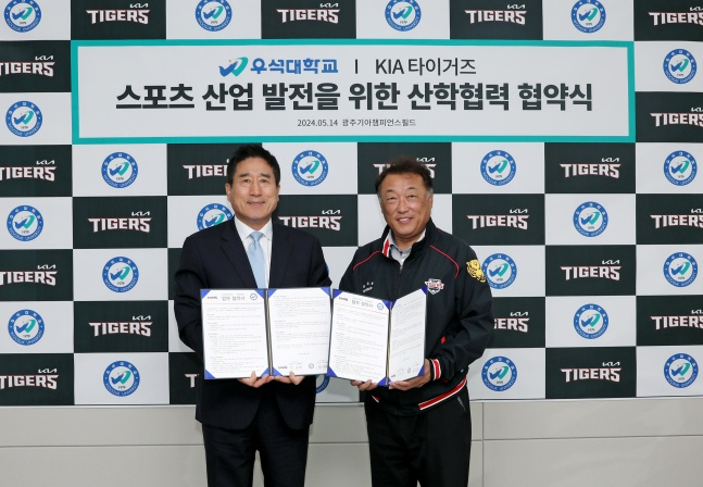 KIA 타이거즈가 우석대학교와 스포츠산업 육성 협약을 맺었다.
