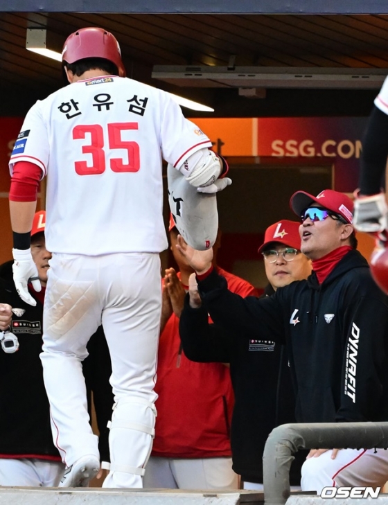 홈런 1위 최정과 타율 1위 길레르모 에레디아가 있음에도 한유섬의 공백은 크게만 느껴졌다. 한유섬의 공백이 크게 느껴졌냐는 질문에 이 감독은 "솔직히 말씀드리면 (티가) 많이 났다. (하)재훈이와 (오)태곤이도 그렇고 해줘야 할 선수들이 못해줬다"며 "그래도 일요일에 두 번째 경기에서 (고)명준이도 그렇고 조금 살아나서 이번주는 좋아질 것이라고 생각한다. 유섬이가 와서 든든한 면도 있다"고 털어놨다.