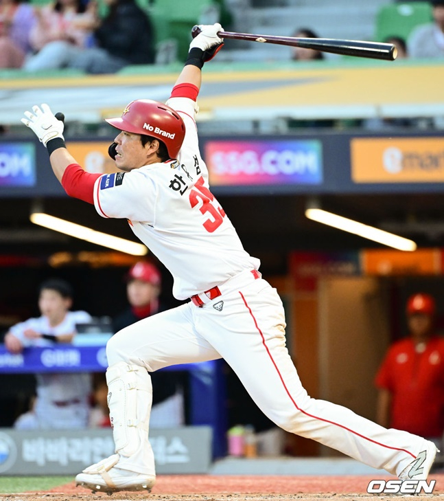 '문학의 왕'이 돌아왔다, 너무도 길게 느껴졌던 열흘 간의 공백. 한유섬(35·SSG 랜더스) 끝에 돌아오자마자 대포를 쏘아올리며 SSG의 승리를 이끌었다.