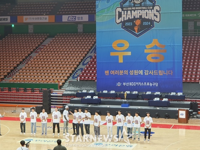 부산 스포츠 팬들에게 27년 만의 우승을 안겨준 부산 KCC 이지스. 홈에서 우승컵을 들어올리지 못한 아쉬움을 달래기 위해 이벤트를 열었다.