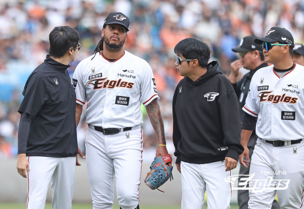한화는 NC에 1-16으로 7회 강우 콜드로 대패하며 홈팬들 앞에서 아쉬운 경기를 했다. 외국인 투수 펠릭스 페냐의 부상이 뼈아팠다. 페냐는 한화가 1-3으로 지고 있는 2회 초 1사에서 손아섭의 강습 타구를 손으로 잡으려다가 부상으로 교체됐다. 하필 그 타구가 공을 던지는 오른손 손목에 맞아 교체를 결정할 수밖에 없었다.