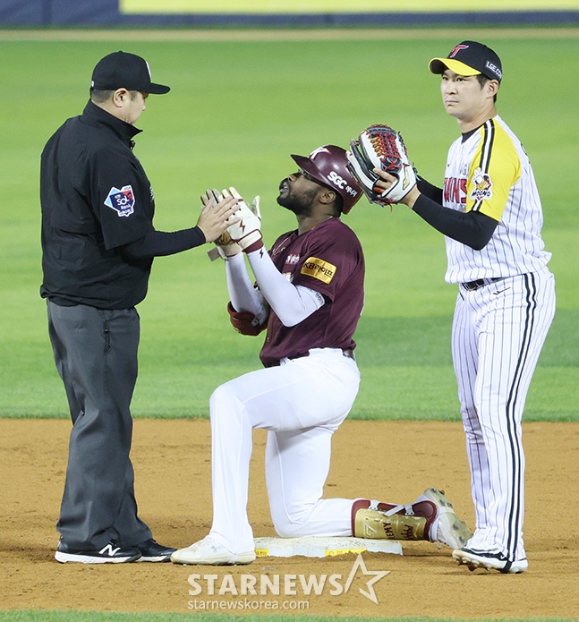 스포츠야구[포토] 정종수 2루심 '도슨 이러지 마'발행 : 2024.05.16 ・ 21:25잠실=김진경 대기자'2024 신한 SOL 뱅크 KBO리그' LG-키움전이 16일 서울 잠실야구장에서 열렸다.키움 도슨이 5회말 1사에서 2루타를 날리고 2루에 안착한 후 정종수 2루심에게 타임을 요청하고 있다.<저작권자 © 스타뉴스, 무단전재 및 재배포 금지>도슨도니도슨야구프로야구키움LG추천 기사김진경 대기자기자홈좋아요 스포츠-야구의 인기 급상승 뉴스스포츠-야구의 최신 뉴스