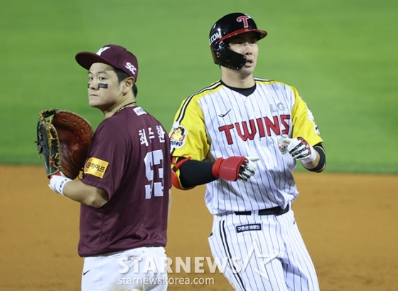 스포츠야구[포토] 최주환 '홍창기 안타 힙하게 인정'발행 : 2024.05.16 ・ 21:30잠실=김진경 대기자'2024 신한 SOL 뱅크 KBO리그' LG-키움전이 16일 서울 잠실야구장에서 열렸다.LG 홍창기기 6회말 무사 1루에서 우중간 안타를 날리고 출루한 후 기뻐하고 있다. 왼쪽은 키움 1루수 최주환.<저작권자 © 스타뉴스, 무단전재 및 재배포 금지>도슨도니도슨야구프로야구키움LG추천 기사김진경 대기자기자홈좋아요 스포츠-야구의 인기 급상승 뉴스스포츠-야구의 최신 뉴스