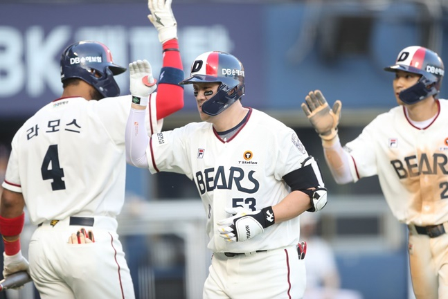 그러나 이날은 두산 타자들의 힘이 롯데를 압도했다. 4회말 2사 주자 없는 상황에서 정수빈이 나균안의 높은 146㎞ 빠른공을 통타, 우월 솔로포를 날렸다. 시즌 2호. 이로써 두산은 역대 4번째 팀 4000홈런 고지에 도달했다.