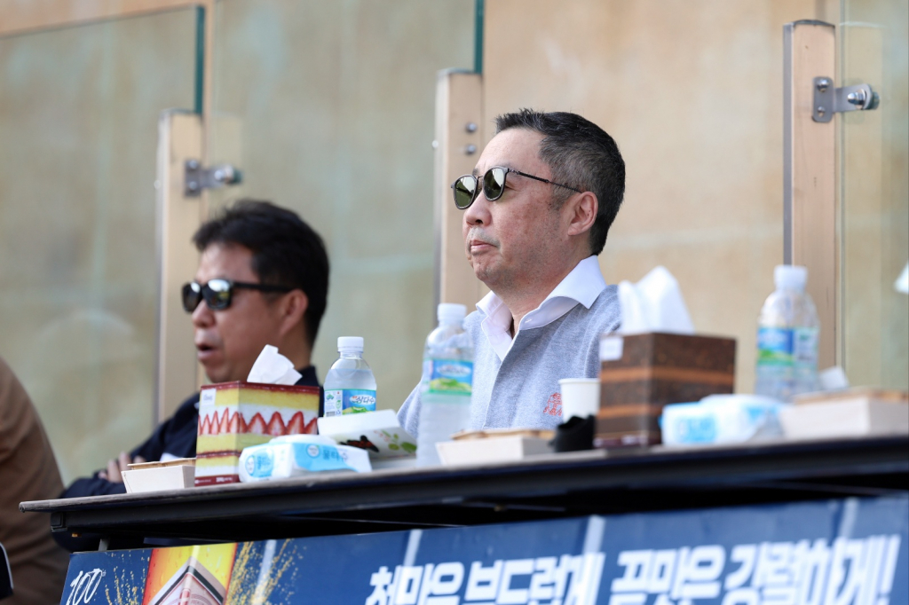 전날 롯데그룹 회장인 신동빈 롯데 구단주의 방문에 힘입어 롯데가 5-1 승리를 거뒀다. 이날은 반대로 박정원 구단주가 경기장을 찾았다. 앞서 선수단이 ABS 시대에 보다 효과적으로 대응할 수 있도록 최고급 태블릿PC를 선물했던 박 구단주의 방문에 두산 선수들을 더욱 힘을 냈다.