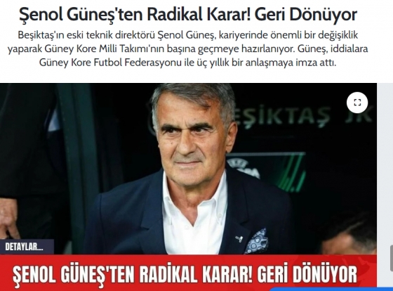 튀르키예 매체 '아크데니즈 게르체크'는 같은 날 "귀네슈 감독이 대한민국 국가대표팀 지휘봉을 잡는다"라며 "귀네슈 감독은 KFA와 3년 계약을 맺었다. 과감한 선택이다. 귀네슈 감독은 한국으로 복귀하게 됐다"라고 알린 바 있다. 귀네슈 감독은 2007년부터 2009년까지 K리그1의 FC서울을 지도한 바 있다.