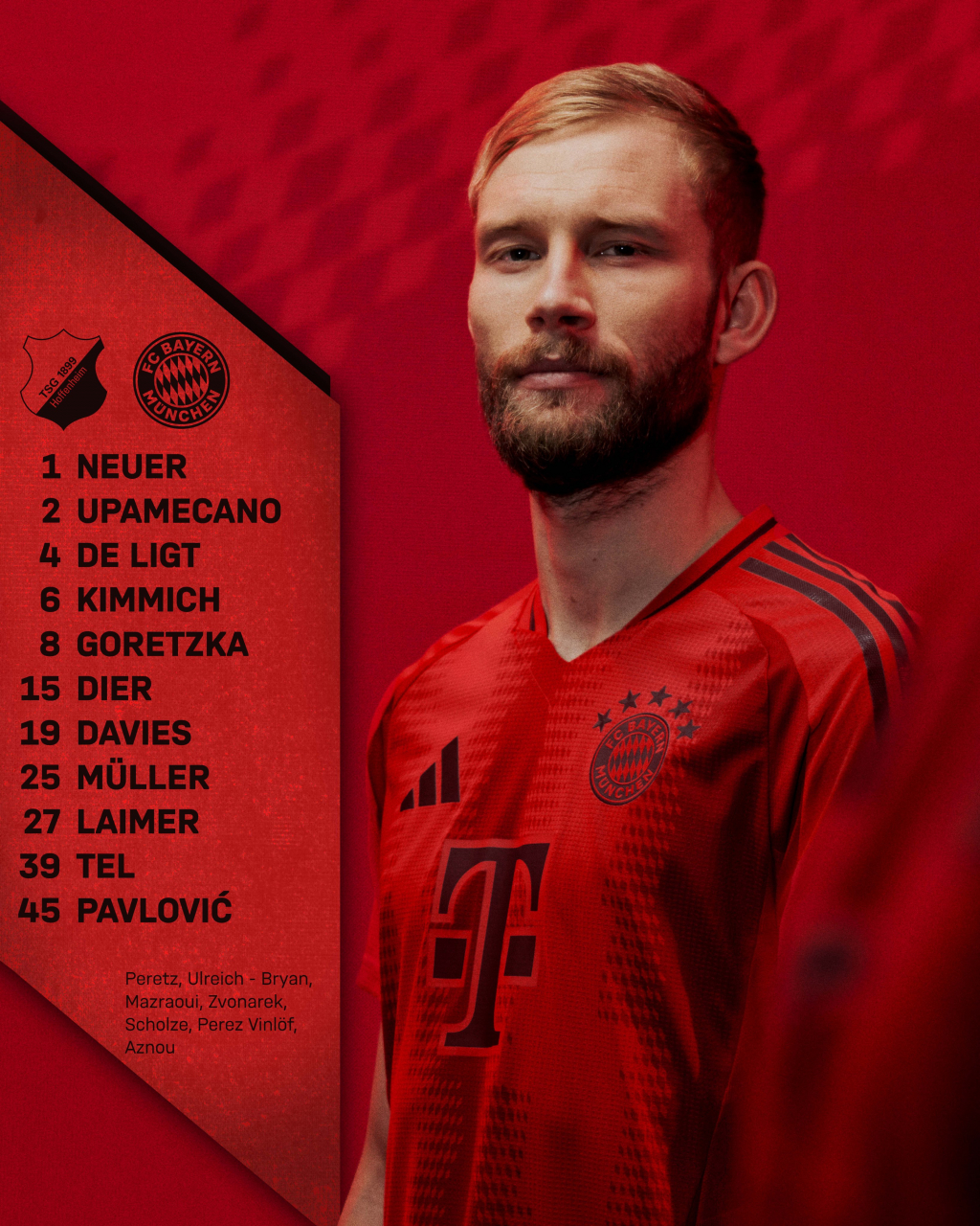 경기 전 라인업이 공개됐다. 지난 볼프스부르크전 발목 부상으로 빠졌던 김민재는 호펜하임전에 결장한다. 투헬 감독은 마티아스 더 리흐트와 다요 우파메카노, 에릭 다이어 주전 센터백으로 내세웠다.