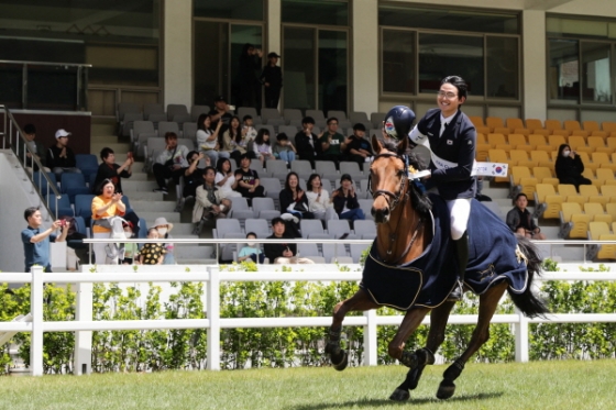 지난 5월 10~12일까지 한국마사회 '88승마경기장'에서 열린 '2024 KRA컵 아시아 주니어 승마대회(KRA CUP CSIJ-B* Seoul 2024)'막을 내린 가운데 한국의 김형호(천안중앙고부설방송통신고)가 장애물 개인전 110cm 경기에서 승용마 '한화카라노'와 우승을 차지했다.