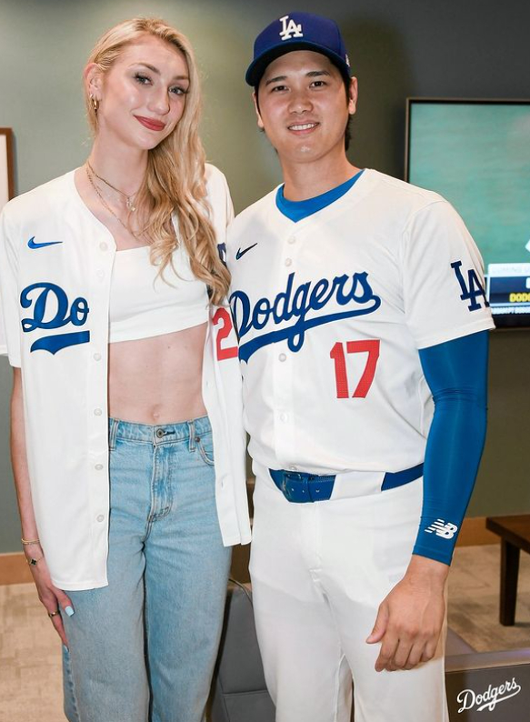 오타니 쇼헤이(30·LA 다저스)가 경기를 앞두고 금발 미녀와 함께 다정한 포즈로 찍은 모습이 화제다.
