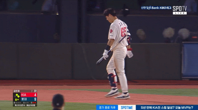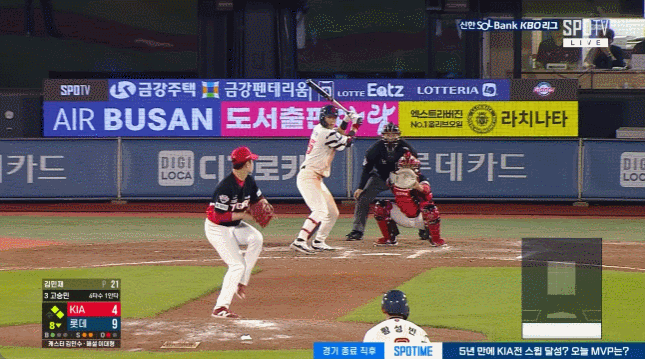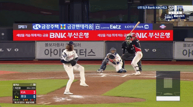 롯데의 공격에서도 비슷한 상황이 나왔다. 8회 말, KIA 투수 김민재와 맞붙은 3번 고승민은 1볼-2스트라이크에서 5구째 바깥쪽 높은 패스트볼을 지켜봤지만 판정은 스트라이크였고, 결국 삼진으로 아웃되고 말았다. 이 역시 스트라이크존 모서리로 들어온 것으로 보였지만, 타자 입장에서 쉽사리 수긍하기는 힘들었다.