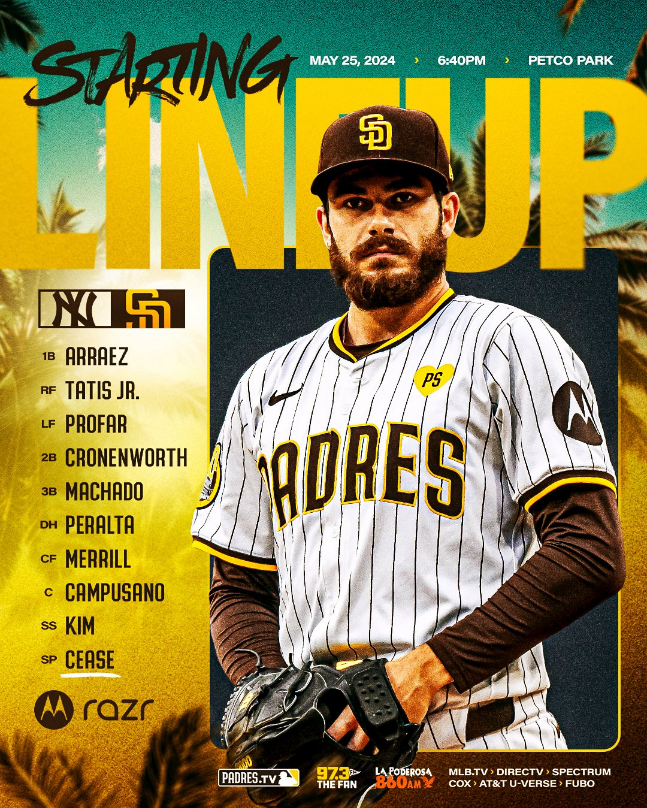 샌디에이고는 루이스 아라에즈(1루수)-페르난도 타티스 주니어(우익수)-주릭슨 프로파(좌익수)-제이크 크로넨워스(2루수)-매니 마차도(3루수)-데이비드 페랄타(지명타자)-잭슨 메릴(중견수)-루이스 캄푸사노(포수)-김하성(유격수) 순으로 타선을 꾸렸다. 선발 투수로는 에이스 딜런 시즈가 등판했다.