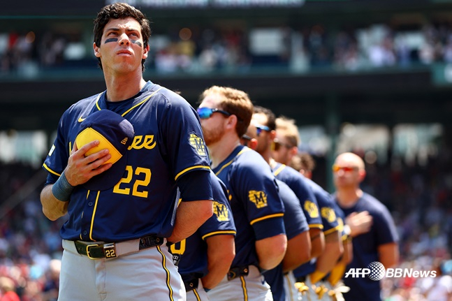 27일(한국시간) 미국 매사추세츠주 보스턴의 펜웨이 파크에서 열린 보스턴 레드삭스와 밀워키 브루어스의 2024 메이저리그 정규시즌 인터리그 경기. 이날 게임은 홈틴 보스턴이 2-1로 승리를 거뒀다.