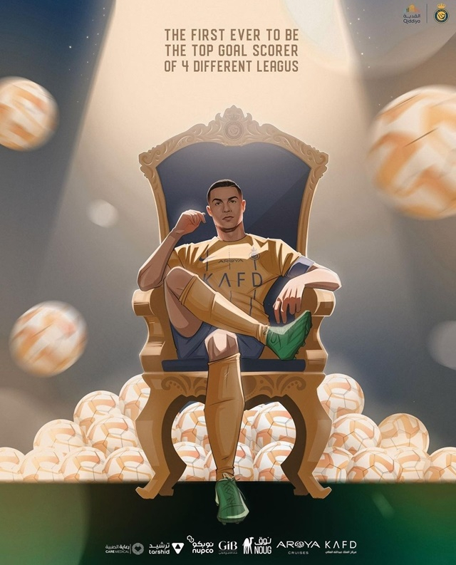 '슈퍼스타' 크리스티아누 호날두(39·알나스르)가 또 다시 득점왕을 차지했다. 축구 역사상 처음으로 무려 4개 리그 득점왕이라는 역사도 썼다.