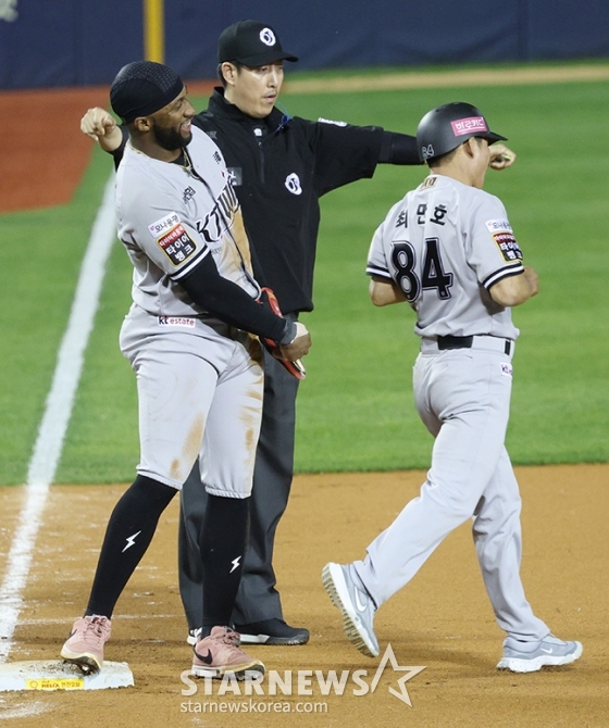 스포츠야구[포토] 로하스의 귀여운 버르장머리발행 : 2024.05.28 ・ 20:43수정 : 2024.05.28 ・ 20:46잠실=김진경 대기자'2024 신한 SOL 뱅크 KBO리그' 두산-KT 전이 28일 서울 잠실야구장에서 열렸다,.KT 6회초 2사 1루에서 1루주자 로히스가 오원석의 중전 안타 때 3루까지 뛰어 세이프된 후 헬멧을 수거하러 가는 최만호 코치의 엉덩이를 터치하고 있다.<저작권자 © 스타뉴스, 무단전재 및 재배포 금지>프로야구두산이승엽양의지정수빈시구추천 기사김진경 대기자기자홈좋아요 스포츠-야구의 인기 급상승 뉴스스포츠-야구의 최신 뉴스